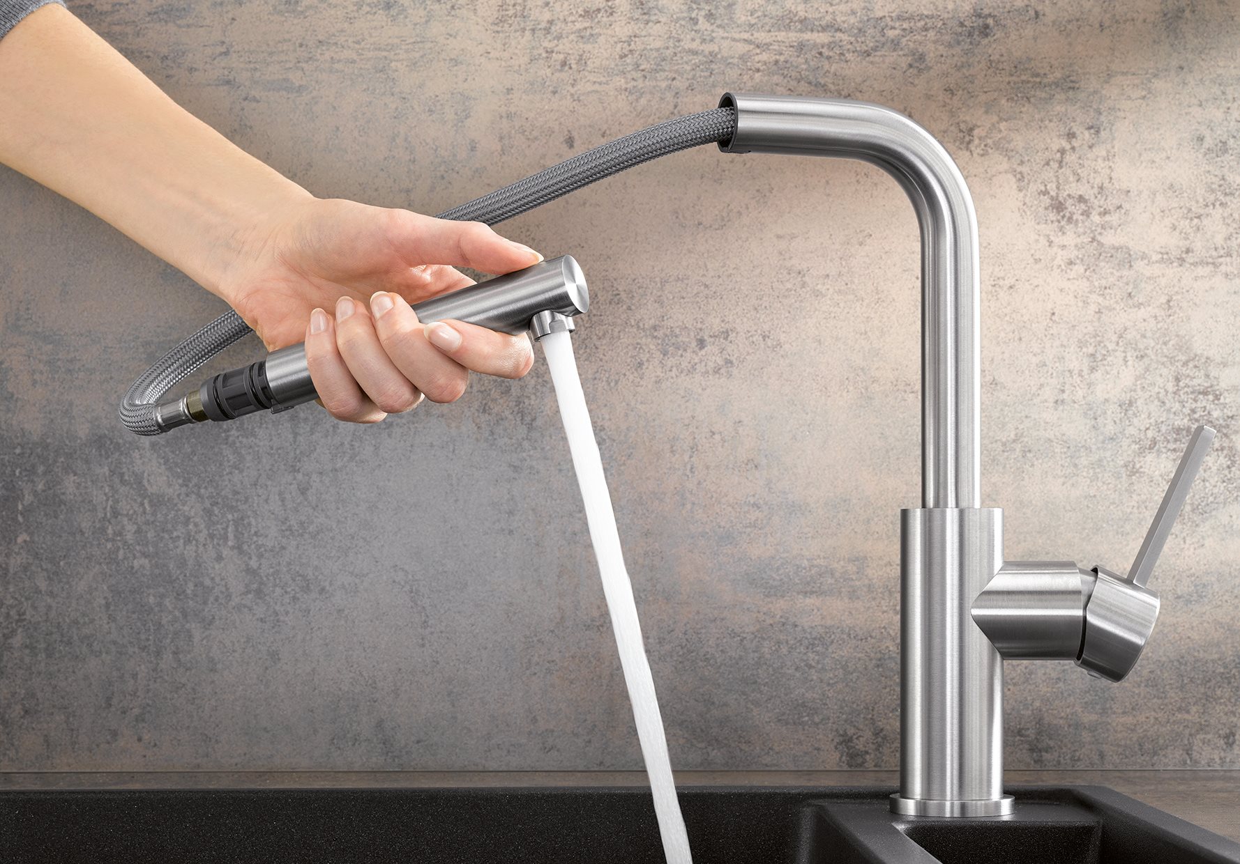 BLANCO Lanora-S køkkenvandhane i rustrift stål, der giver et enkelt look. Indret dit køkken med dette praktiske og enkle køkkenarmatur fra BLANCO. Få masser af enkelthed med stål i dit køkken. Fremstår klassisk, enkelt og elegant på samme tid. Køkkenarmaturets mange smarte og praktiske funktioner giver stor brugervenlighed og komfort, når køkkenopgaverne ved og omkring køkkenvasken står på. Udtræksbruseren giver dig samtidigt en større og mere præcis arbejdsradius. Svingtuden har ligeledes en svingradius på 190°.