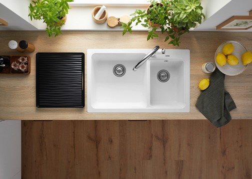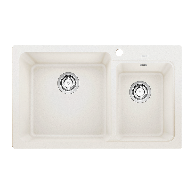 Blanco Naya 8 køkkenvask 815 x 500 mm – funktionelt design med dobbelt kumme i hvid Silgranit til nedfældning