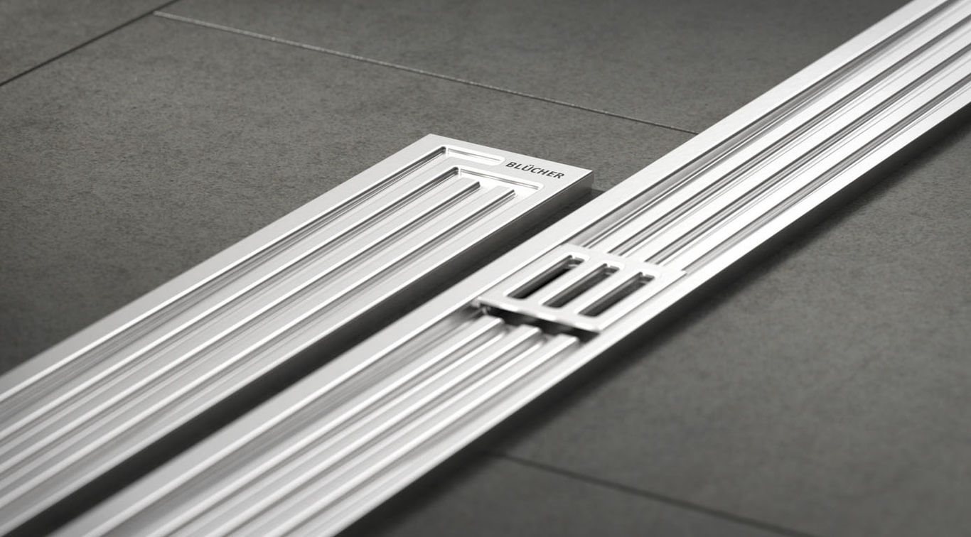 Blücher Afløbsrender er gulvafløb til gulvtyper af beton eller fliser, hvor selve afløbet er smalt, men langt. Blucher ART DECO gulvafløb placeres oveni vandlåshus og er til montering langs væggen.