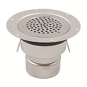 Rustfrit Blücher Circle gulvafløb med lodret Ø110 mm afløb.