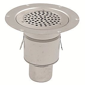 Rustfrit Blücher Circle gulvafløb med lodret Ø75 mm afløb.