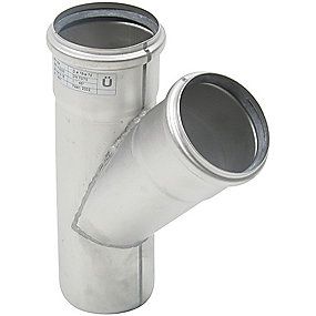 Blücher EuroPipe grenrør med 45° forgrening fremstillet af syrefast stål.