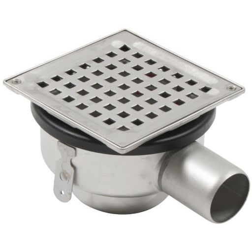 BLÜCHER Domestic-150 justerbar afløb for beton- og klinkegulve, med vandret Ø50 mm udløb.