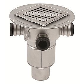 ​​​​​​​Rustfrit Blücher gulvafløb model Square med lodret Ø75 mm afløb.