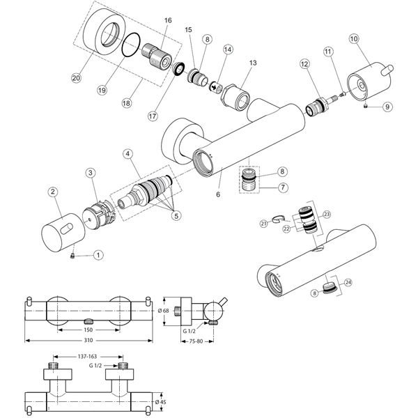 Børma greb (nr. 10) til Term brusearmatur i krom