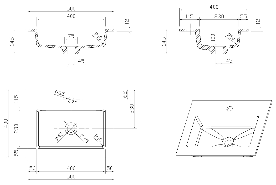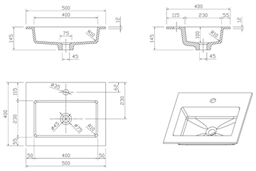 Cassøe Como Solid surface vask med sort stål stativ samt bundplade - 500 x 400mm.
