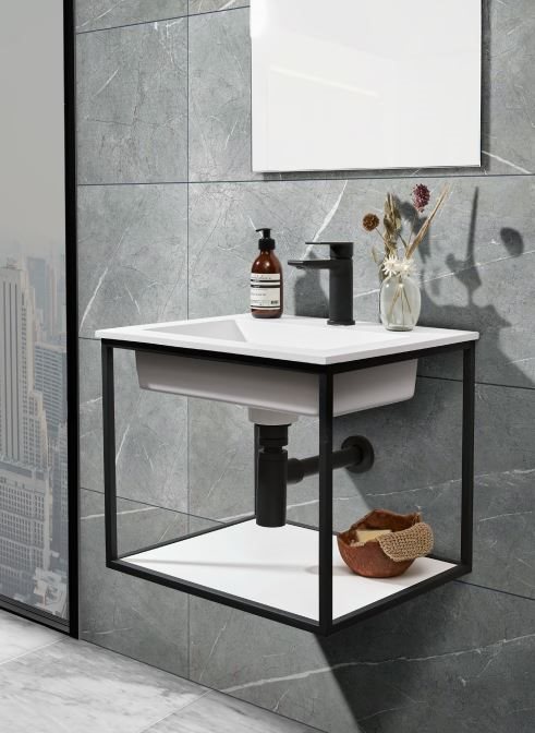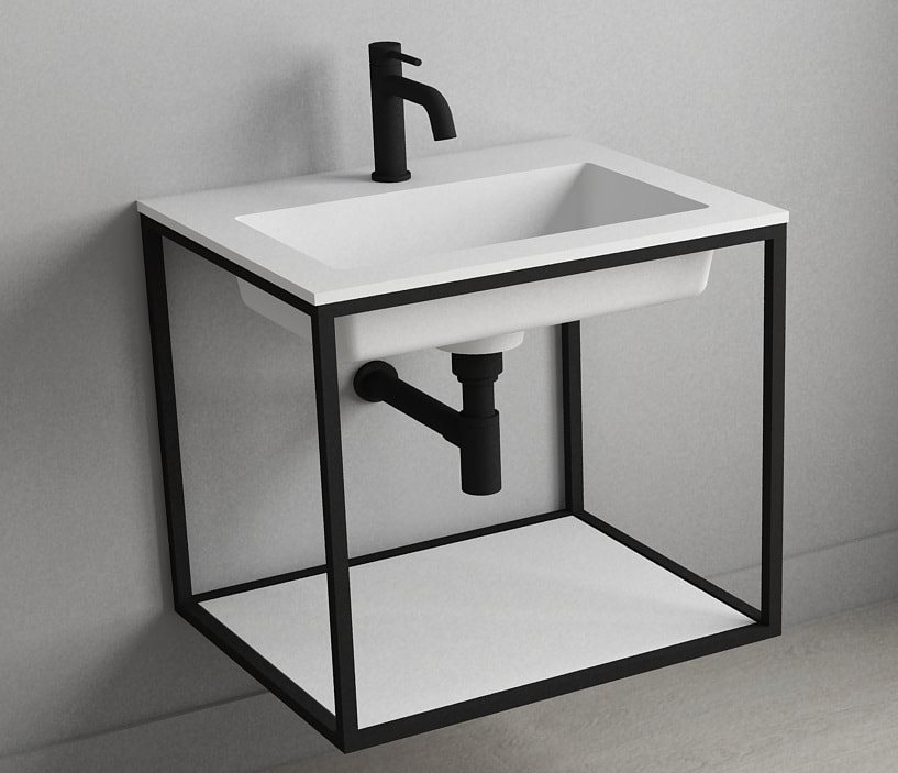 Cassøe Como Solid surface vask med sort stål stativ samt bundplade - 500 x 400