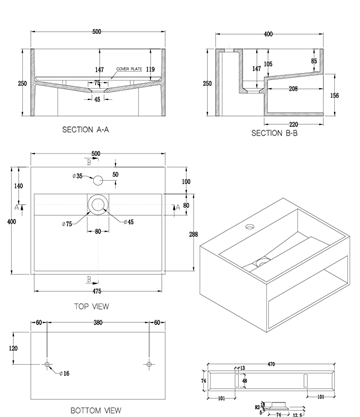 Cassøe Håndvask 50 x 40cm med opbevaringsplads, Solid surface i Mat hvid