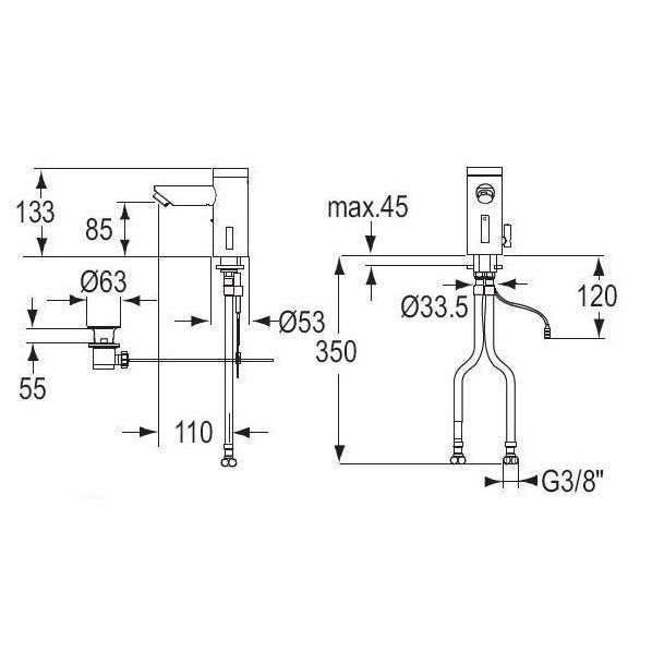 Iqua L10 berøringsfrit håndvaskarmatur, med temperatur vælger. Uden løft op ventil. Til batteridrift som er monteret i kroppen. Inkl funktioner som rengøringsspærring, sensor rækkevidde indstilling, efterløbstidregulering og meget andet.