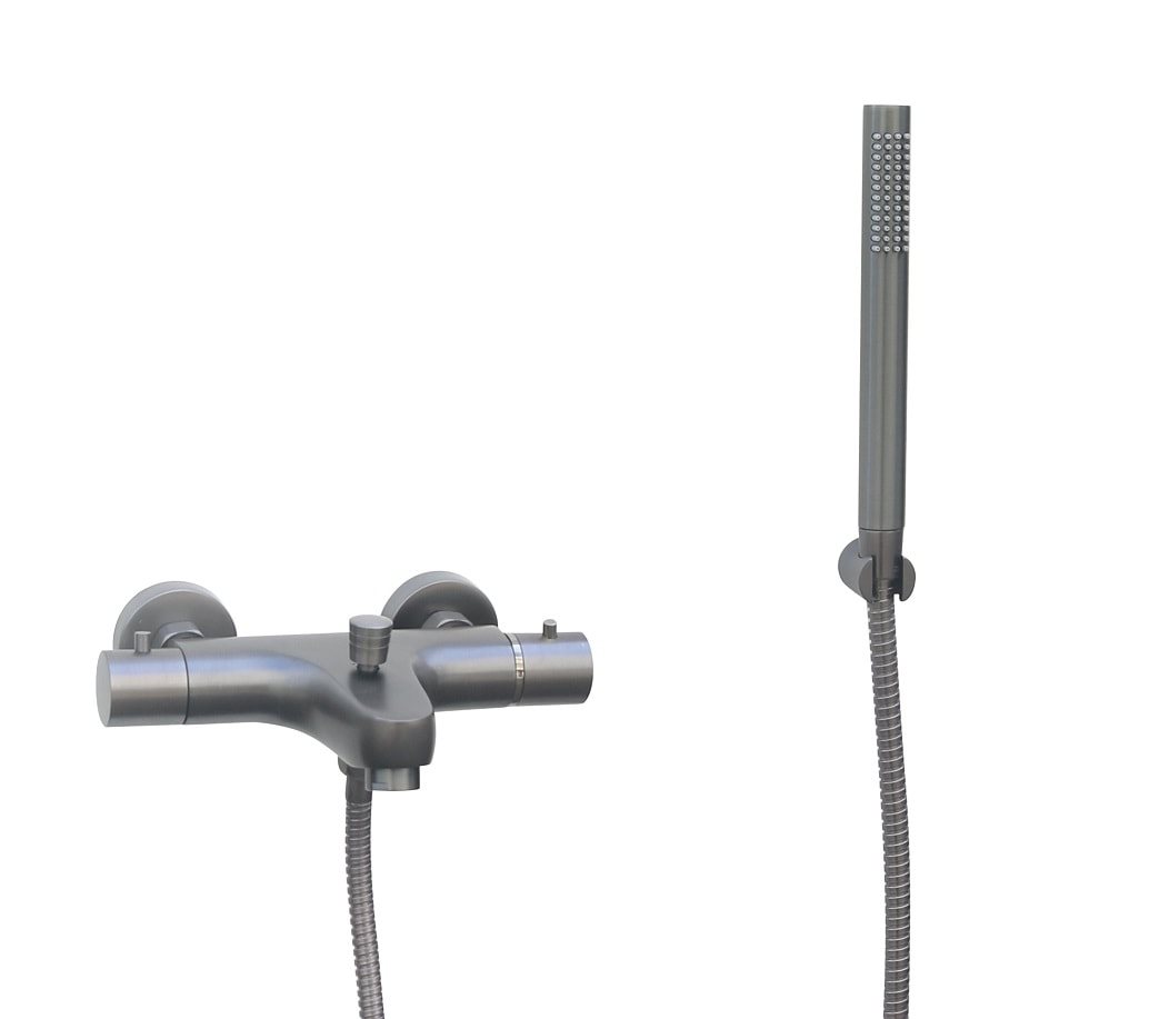 Cassøe kar-/brusearmatur med termostat og håndbruser, Gun metal