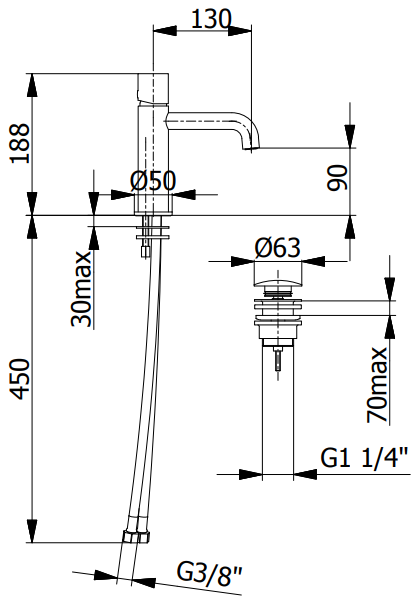 - Tilslutningsform: Flexslanger 3/8" omløbere - længde 450 mm