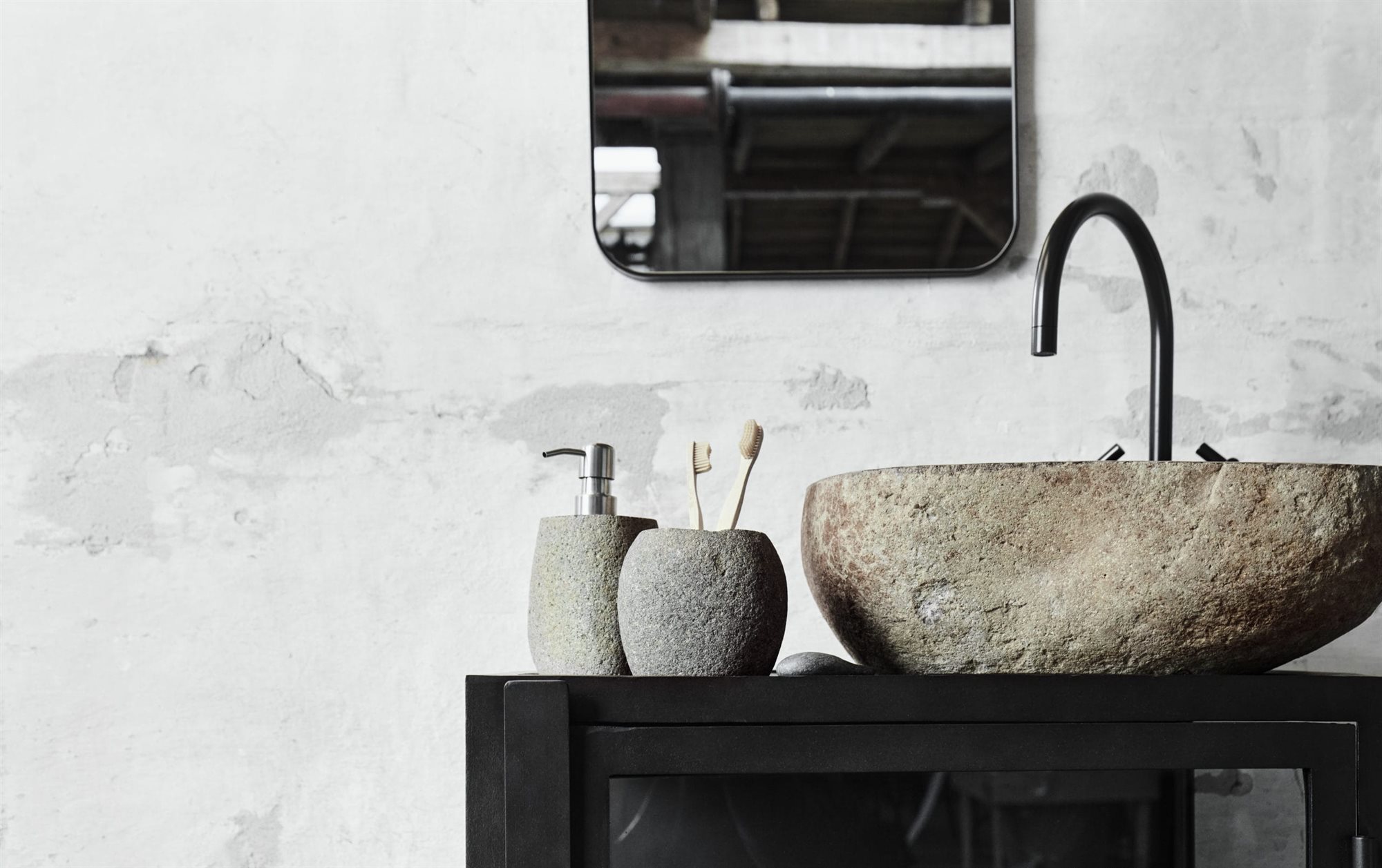 En usædvanlig vaske bowle med cool og råt udseende med rustik natur flodstensvask, der løfter hele rummet og er det perfekte udgangspunkt for resten af indretningen på dit badeværelse.