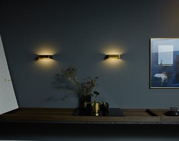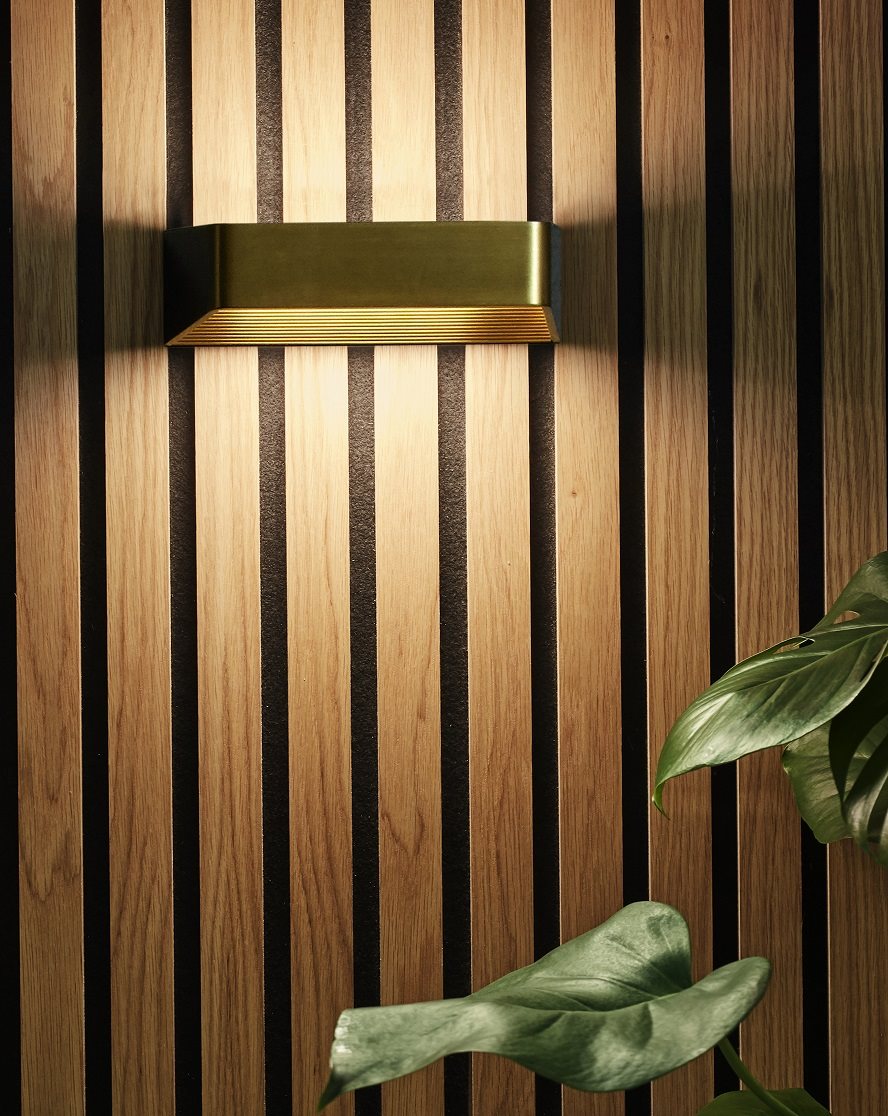 Flot badeværelseslampe i sort, som også kan bruges i hjemmets øvrige rum.