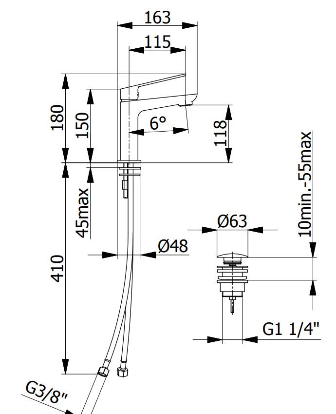 Sleek håndvaskbatteriet leveres med keramisk kartusche og en smart pop up bundventil.