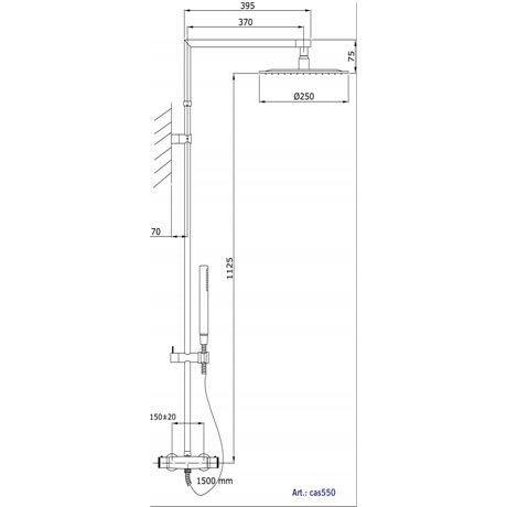 Cassøe termostatbrusesystem med tyndt brusehoved, krom