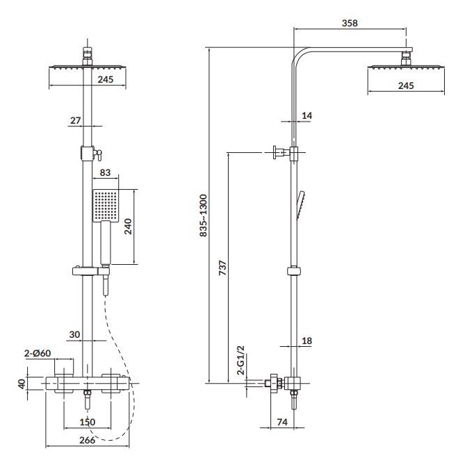 Cersanit RECTANGULAR Brusesystem Komplet i Krom