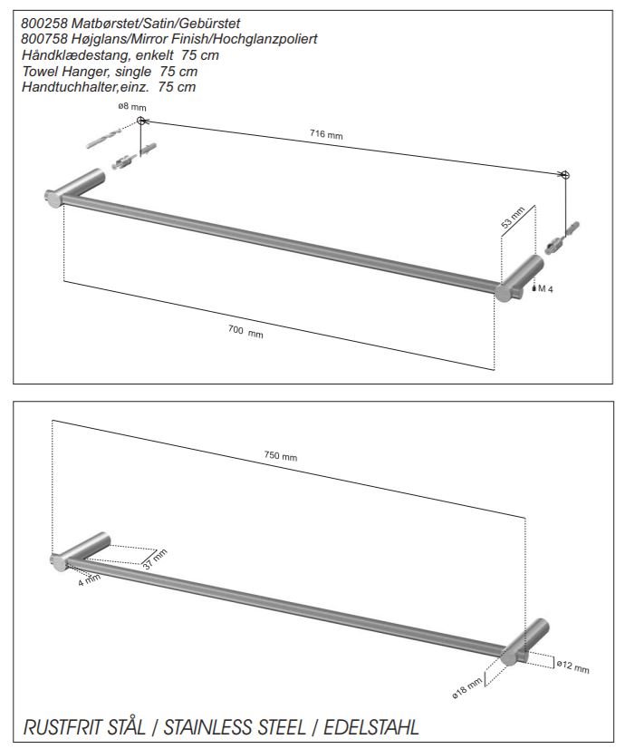 Cool Line håndklædestang 75 cm. - Matbørstet