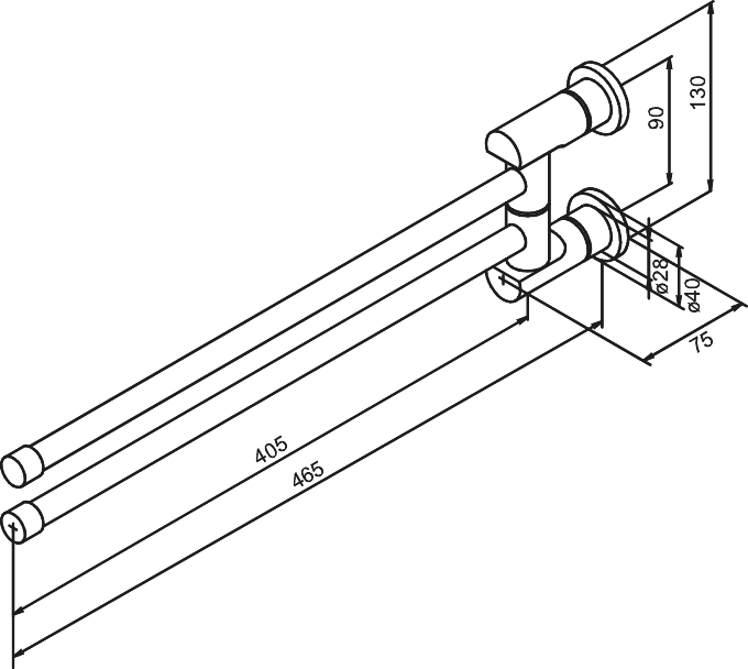 Damixa dobbelt svingbar håndklædestang i krom. (vvs nr.: 775945200)