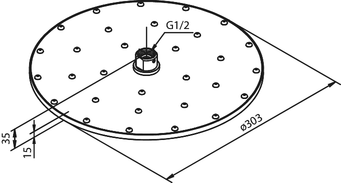 Damixa Eliza Hovedbruser Ø303mm i krom med 1/2" gevind