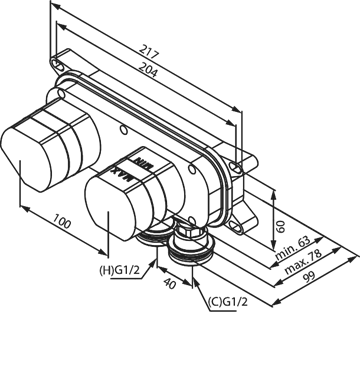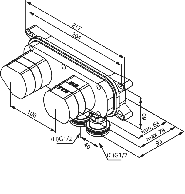 Indbygningsdybde (min. 63mm - max. 78mm)