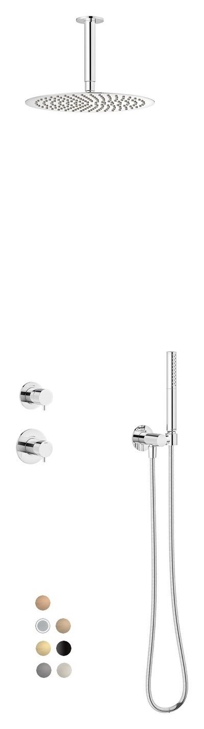 Damixa Iris DS 2 brusesystem til indbygning i væggen med slim loftmonteret hovedbruser og elegant 3-spray håndbruser - Vælg farve