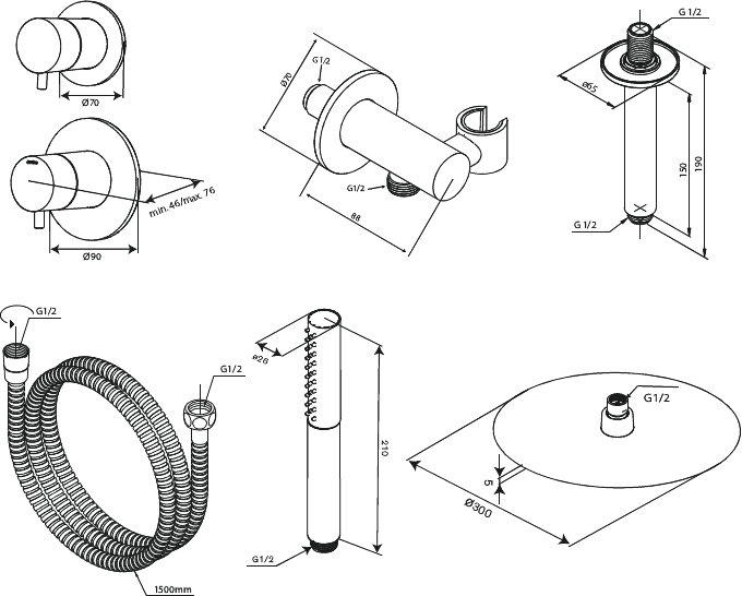 • Inkl. 300 mm hovedbruser + håndbruser med 1 indstilling + 150 mm bruserør til loftmontage