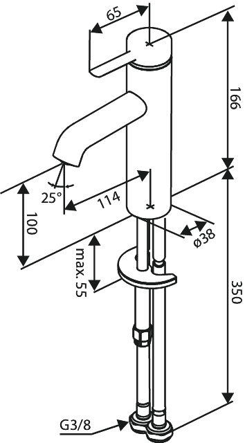 Armaturets slanke batterikrop på kun 38 mm understreger det minimalistiske design, der kendetegner Iris-serien. Resultatet er et tidløst armatur, som fremstår enkelt og elegant, men stadig tilbyder den velkendte kvalitet og funktionalitet, Damixa er kendt for.