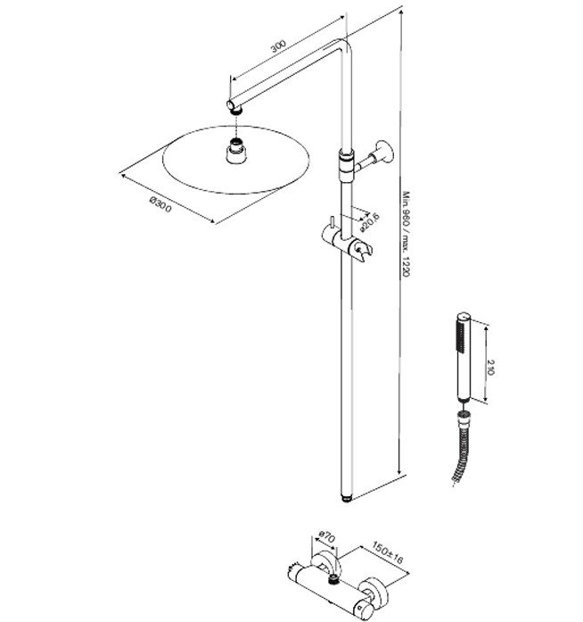 • Justerbar indstilling af højde, min 960 mm, max 1220 mm
