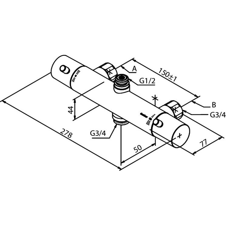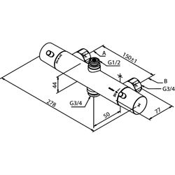 Damixa Merkur Thermixa 100 kar- & brusebatteri med studs (afgang) op og ned, Krom.