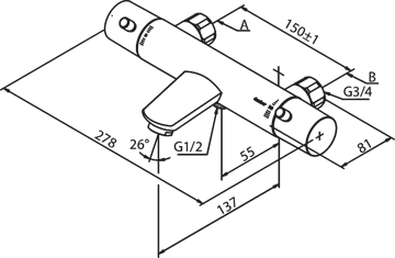 Damixa Merkur Thermixa 100 kar-/brusearmatur med termostat i krom