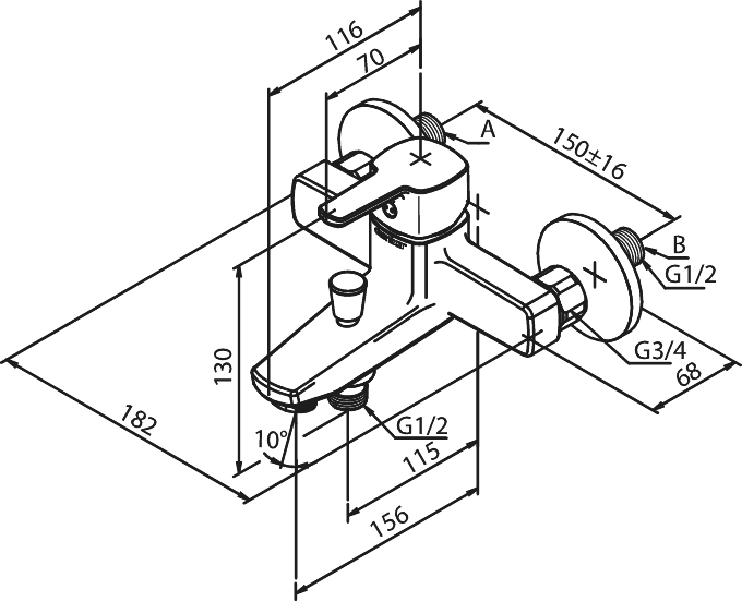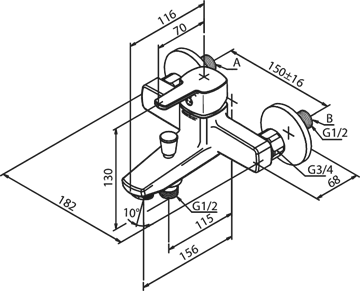 - Centerafstand 150mm CC