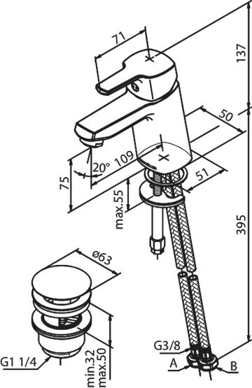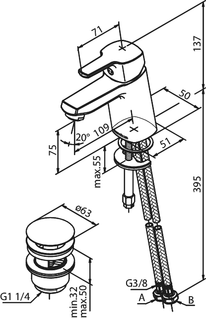 Damixa Pine Håndvaskbatteri med pop up bundventil, krom
