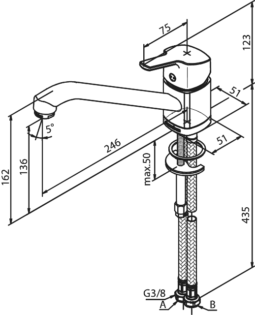 Damixa Pine køkkenarmatur med lav svingtud i krom