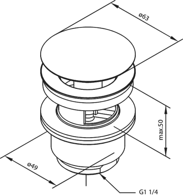 Damixa Silhouet 1 1/4" bundventil push-open, Steel