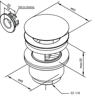 Damixas push-open bundventil er til håndvaske med overløb, den betjenes nemt ved hjælp af et let tryk, så du hurtigt og enkelt kan åbne eller lukke ventilen.