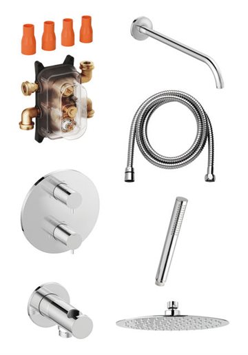 • Inkl. 250 mm hovedbruser + håndbruser med 1 indstilling + 400 mm brusearm til vægmontage