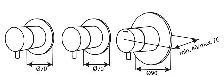 • Installationsdybde min. 75 mm - max. 104 mm - indbygningsdel er tilkøb