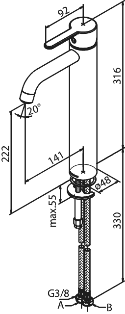 Den høje tud er designet til at give tilstrækkelig plads under vandhanen til nemt at kunne vaske hænder, ansigt eller børste tænder uden at skulle bøje sig ned, hvilket er praktisk og bekvemt i dagligdagen. Tudens højde gør det også til det oplagte valg i forhold bowle vaske.