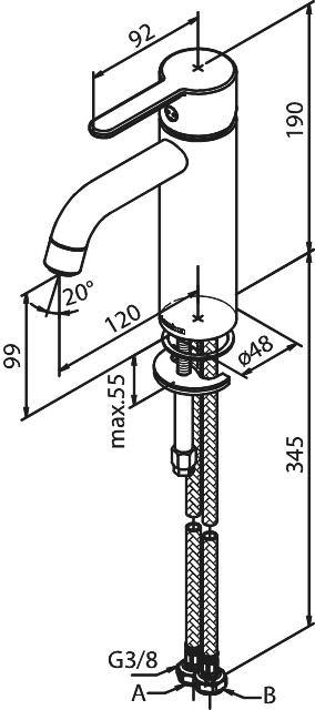Med fleksible tilslutningsslanger med 3/8" omløber, der giver en nem montering