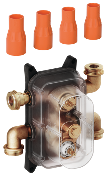 Husk at tilkøbe Damixa Termostatisk indbygningsboks til brus. Denne indbygningsdel er fundamentet for Damixa indbygnings-brusetermostatarmaturer. Denne indbygningsdel kommer med lækagesikringer, hvilket er et krav for, at reglerne for skjulte indbygningsbruse installationer er opfyldt.
