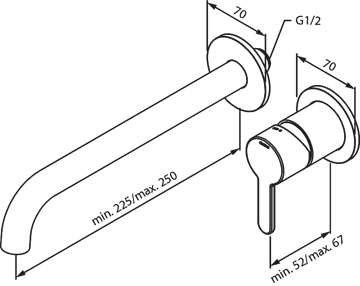 Damixa Silhouet indbygningsarmatur til håndvask i børstet kobber med 250 mm tud (ex indbygningsdel)