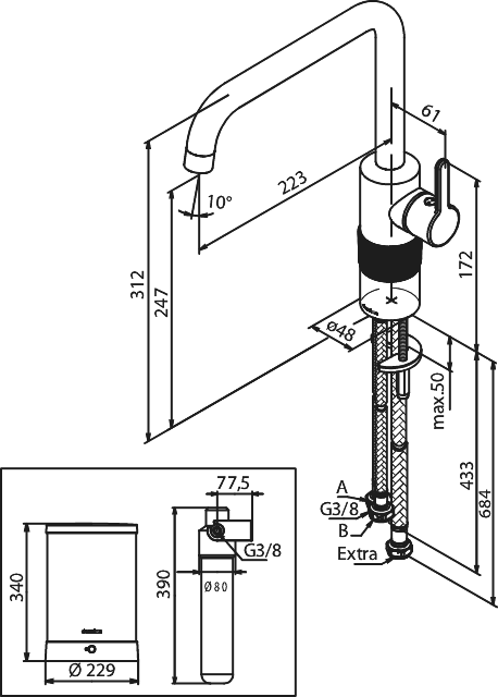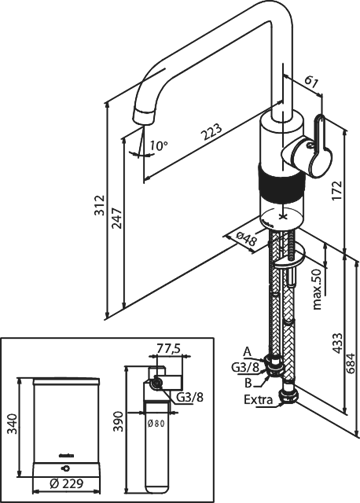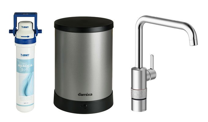 Damixa Silhouet Instant passer til de fleste typer af underskabe, og køkkenvaske og er nem at installere. Med BWT-filteret kan du nyde kalkfrit mineralvand direkte fra den kogende hane, og mineralet magnesium skaber en naturlig balance i vandet og bidrager til en bedre smag.