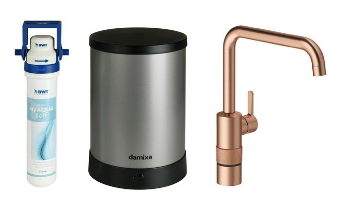 Damixa Silhouet Instant passer til de fleste typer af underskabe, og køkkenvaske og er nem at installere. Med BWT-filteret kan du nyde kalkfrit mineralvand direkte fra den kogende hane, og mineralet magnesium skaber en naturlig balance i vandet og bidrager til en bedre smag.