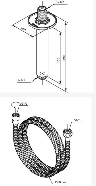 • Inkl. 250 mm hovedbruser + håndbruser med 1 indstilling + 150 mm Loftmonteret brusearm