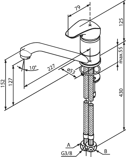 Tilslutningsform: Flexslanger med 3/8" omløbere