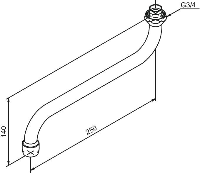 Damixa Svingtud 250 mm krom med 3/4" omløber