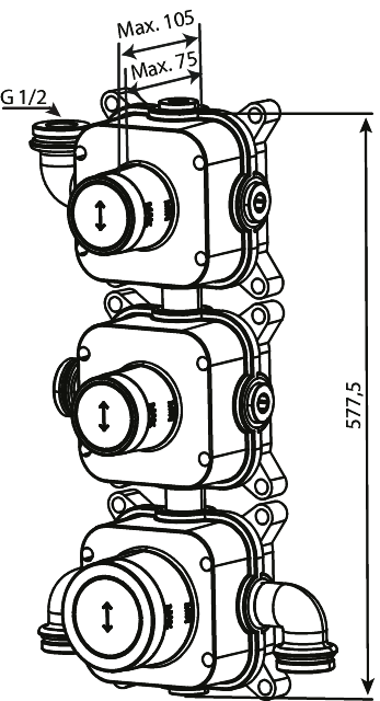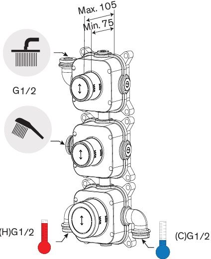 Indbygningsdybde (min. 75mm - max. 105mm)