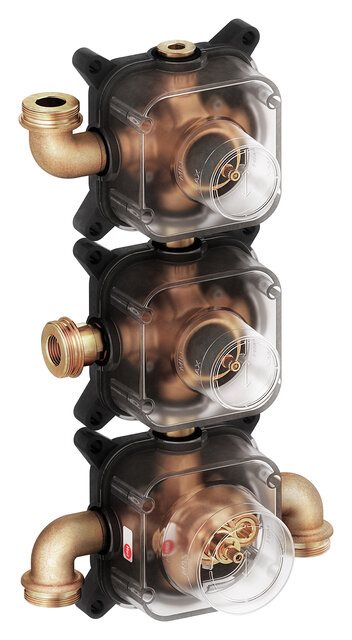 Denne Indbygningsboks med to envejsventiler er fundamentet for Damixa´s XS 1 og XS 2 indbygningsarmaturer. Denne indbygningsdel kommer med lækagesikringer hvilket er et krav for, at reglerne for skjulte indbygningsbruse installationer er opfyldt. Lækagesikringernes funktion er at forhindre, at der ikke kan løbe vand ud inde i væggen.