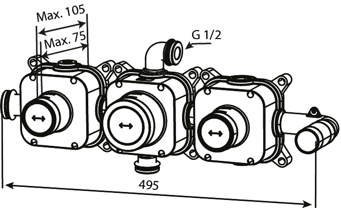 Indbygningsdybde (min. 75mm - max. 105mm)