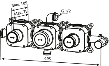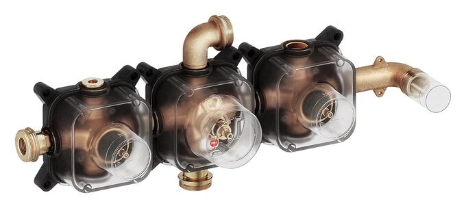 Damixa Indbygningsboks med to envejsventiler er fundamentet for Damixa´s BS 1 indbygningsarmaturer. Denne indbygningsdel kommer med lækagesikringer hvilket er et krav for, at reglerne for skjulte indbygningsbruse installationer er opfyldt. Lækagesikringernes funktion er at forhindre, at der ikke kan løbe vand ud inde i væggen.